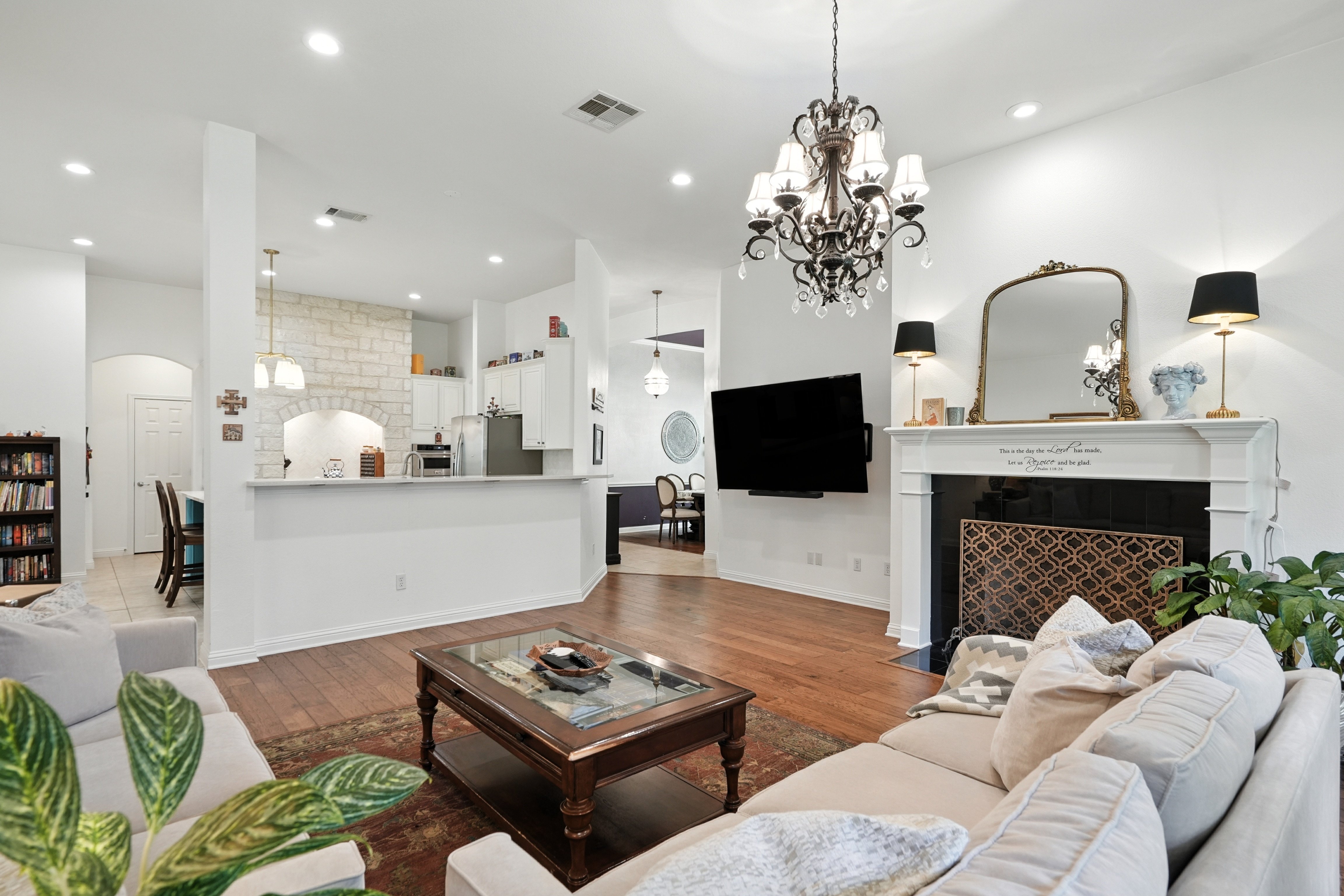 Nestled in the heart of Circle C West, 10808 Maelin Dr is a beautifully maintained single-story home ready for its next owner. Step inside to an inviting open floor plan, where a cozy fireplace warms the living room and creates a welcoming atmosphere.